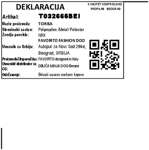 Ova torba odiše elegancijom i sofisticiranim šarmom. Izrađena je od teksturiranog, pletenog materijala u nežnoj svetlojj nijansi, što joj daje profinjen letnji karakter. Zlatni metalni detalji i dekorativna kopča na prednjoj strani unose dozu luksuza i čine je upečatljivim modnim dodatkom.