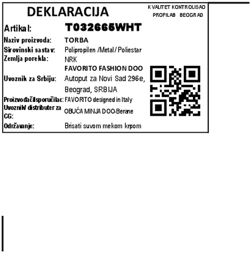 Ova torba odiše elegancijom i sofisticiranim šarmom. Izrađena je od teksturiranog, pletenog materijala u nežnoj svetlojj nijansi, što joj daje profinjen letnji karakter. Zlatni metalni detalji i dekorativna kopča na prednjoj strani unose dozu luksuza i čine je upečatljivim modnim dodatkom.